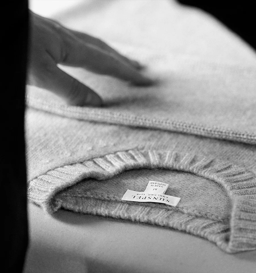 The cashmere is ethically sourced by one of Scotland’s oldest spinners, Todd and Duncan, from nomadic herders who use traditional sustainable practices. Based on the banks of Loch Leven since 1897, Todd and Duncan use the naturally pure, soft Scottish water to soften and open the fibres, resulting in the remarkable feel and superior colour of their cashmere.